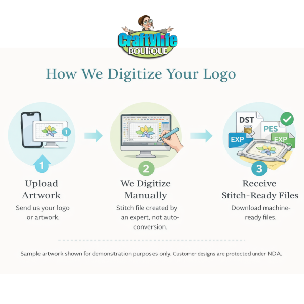 Craftylife digitizing services are competitively priced, and we provide quick turnaround times without compromising on quality. We offer flat-rate pricing, so you’ll know exactly what you’re paying upfront, with no surprises or hidden fees.